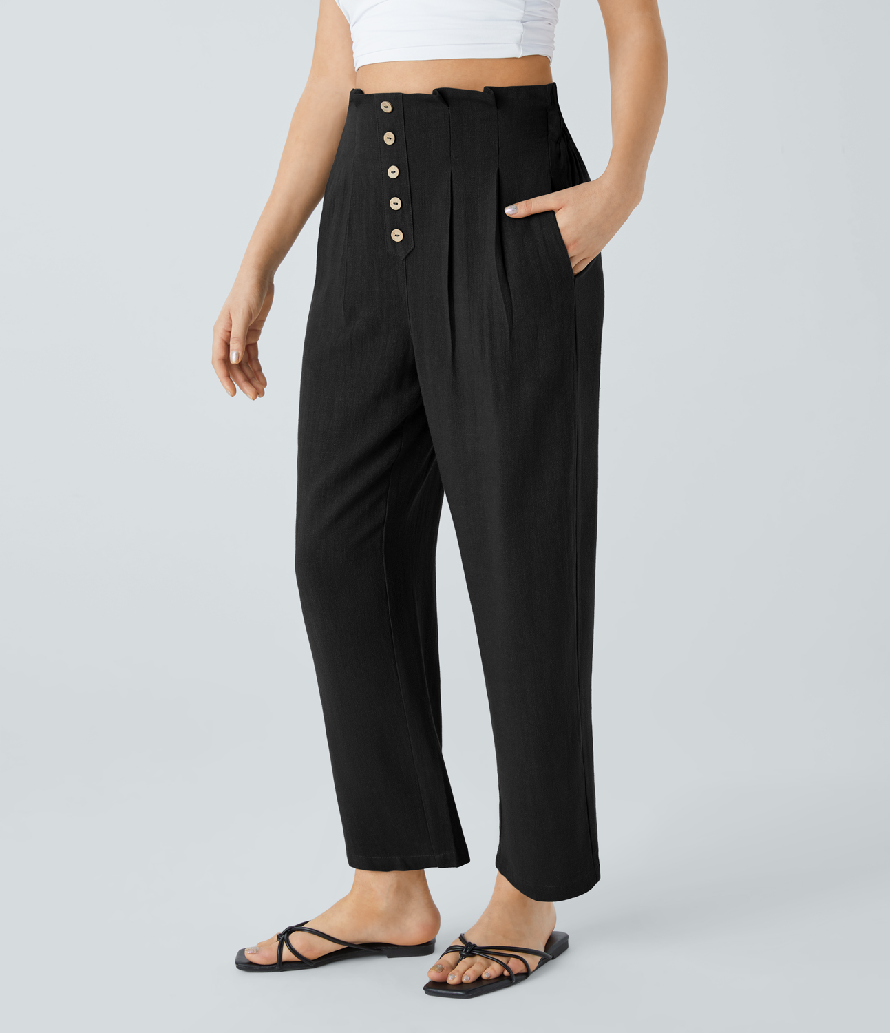 Halara High Waisted Button Multiple Pockets Ankle Length Work Pants - Black - S(regular) Halara