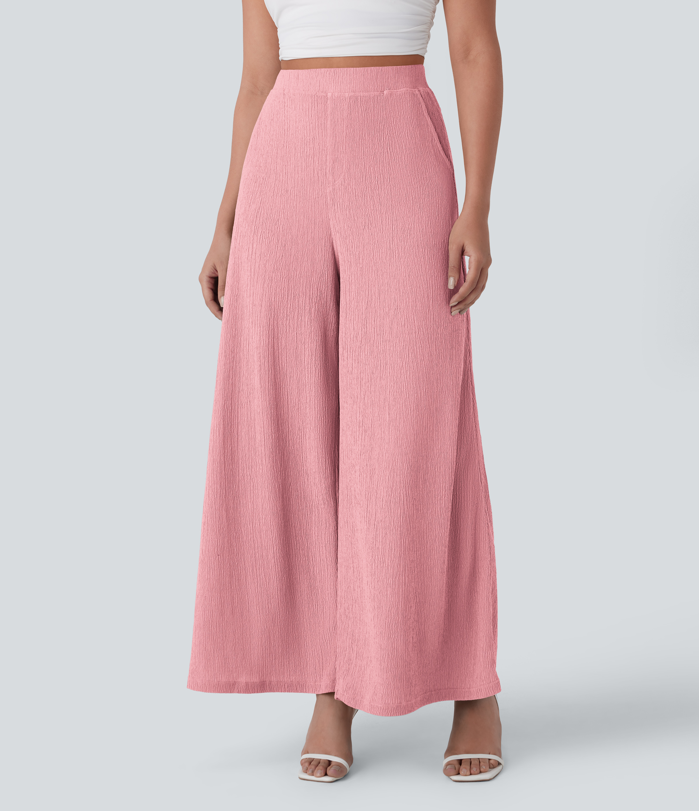 Halara High Waisted Side Pocket Wide Leg Flowy Casual Pants - Bridal Rose - M(regular) sweatpants jogger pants stacked sweatpants Halara