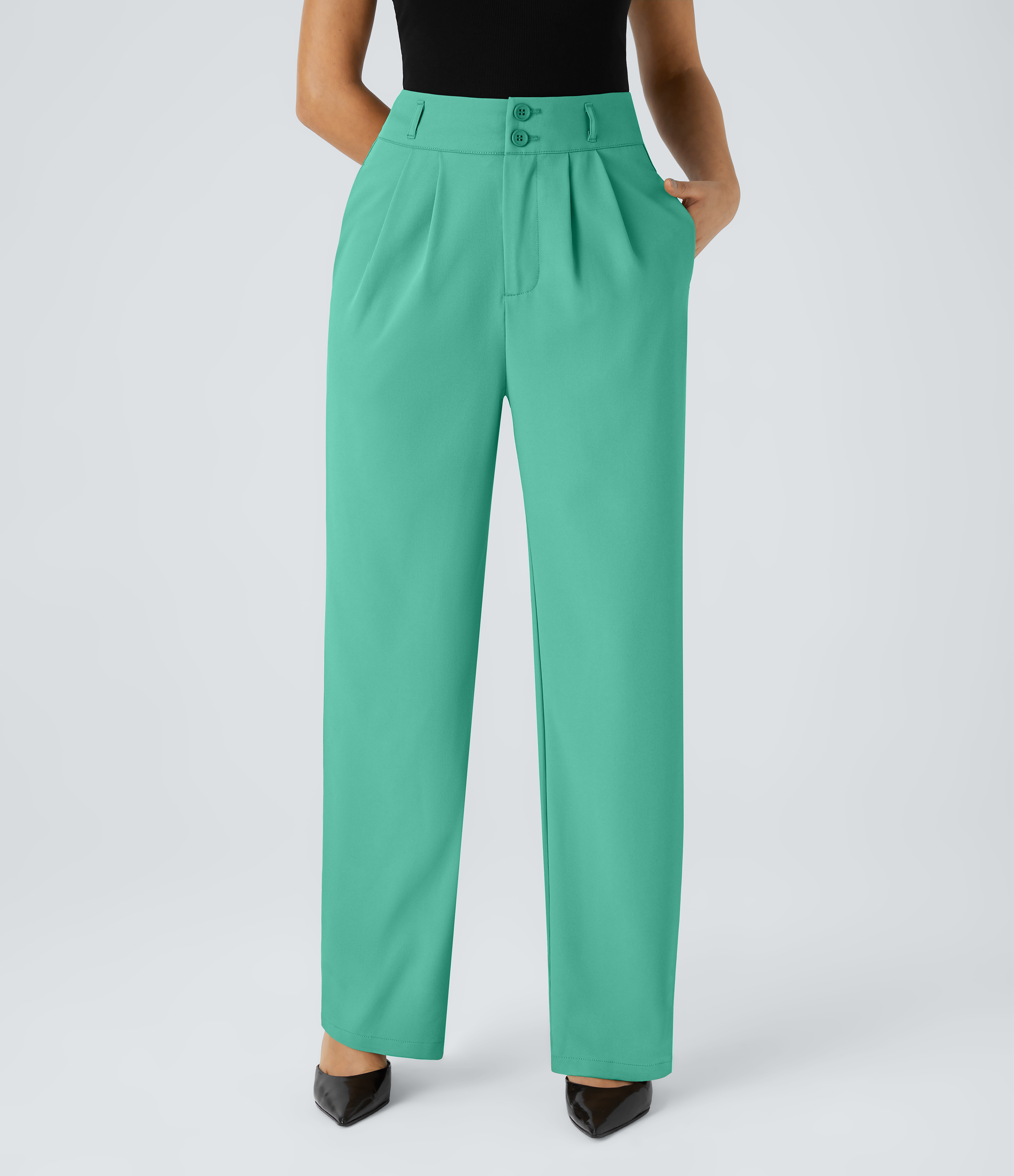 Halara Breezefulв„ў High Waisted Tie Front Invisible Zipper Side Pocket Ruffle Flowy Quick Dry Work Pants - Stone Blue - XS(regular) Halara