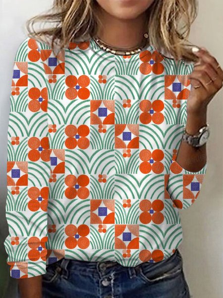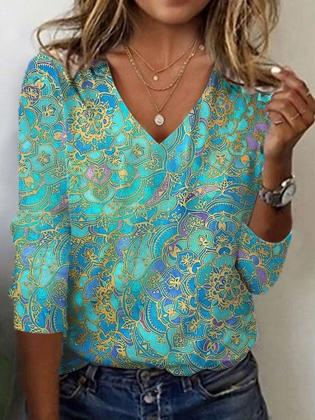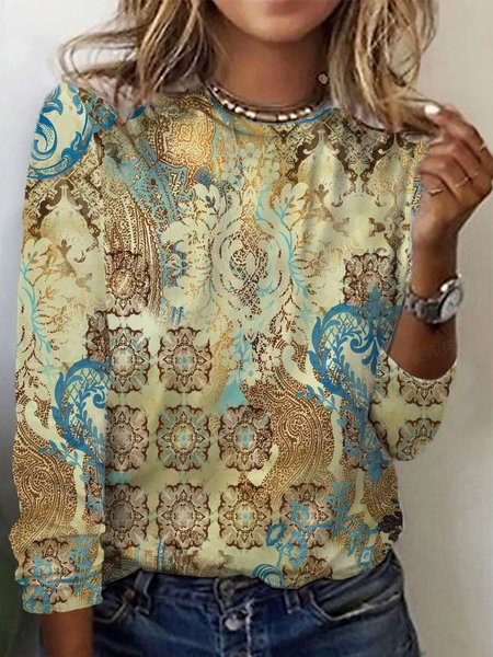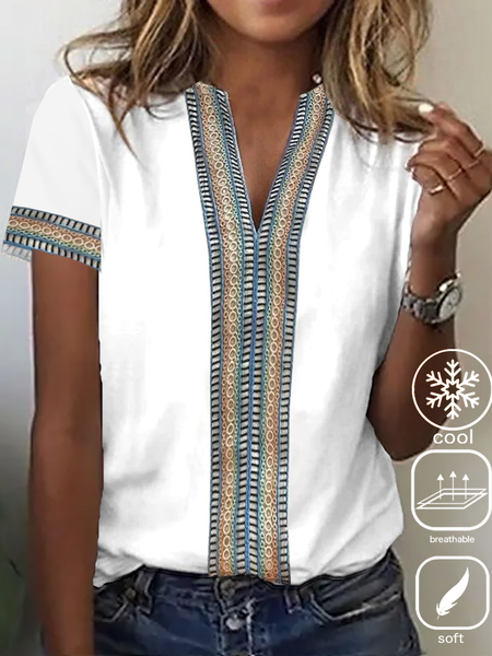 Women`s Short Sleeve Tee T-shirt Summer Ethnic Crew Neck Casual Top T-Shirts JustFashionNow