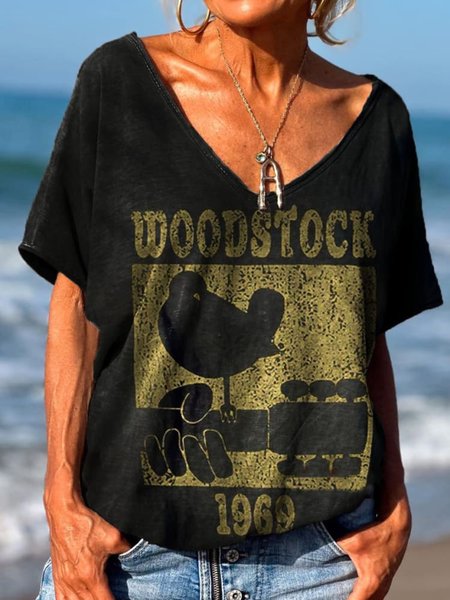 V Neck Casual Plain Lace Bukle T-Shirt T-Shirts JustFashionNow