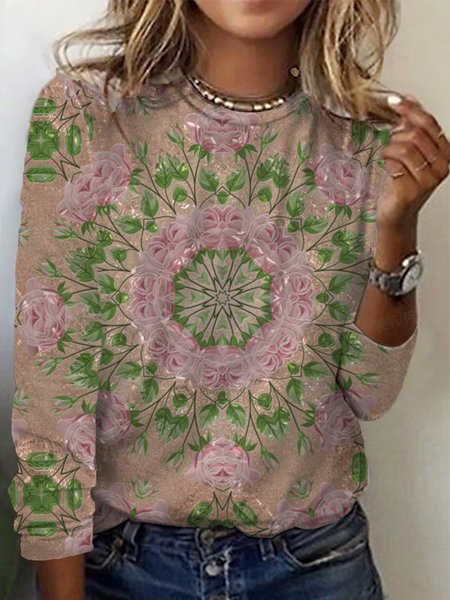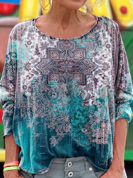 Women`s Short Sleeve Tee T-shirt Summer Ethnic Crew Neck Casual Top T-Shirts JustFashionNow