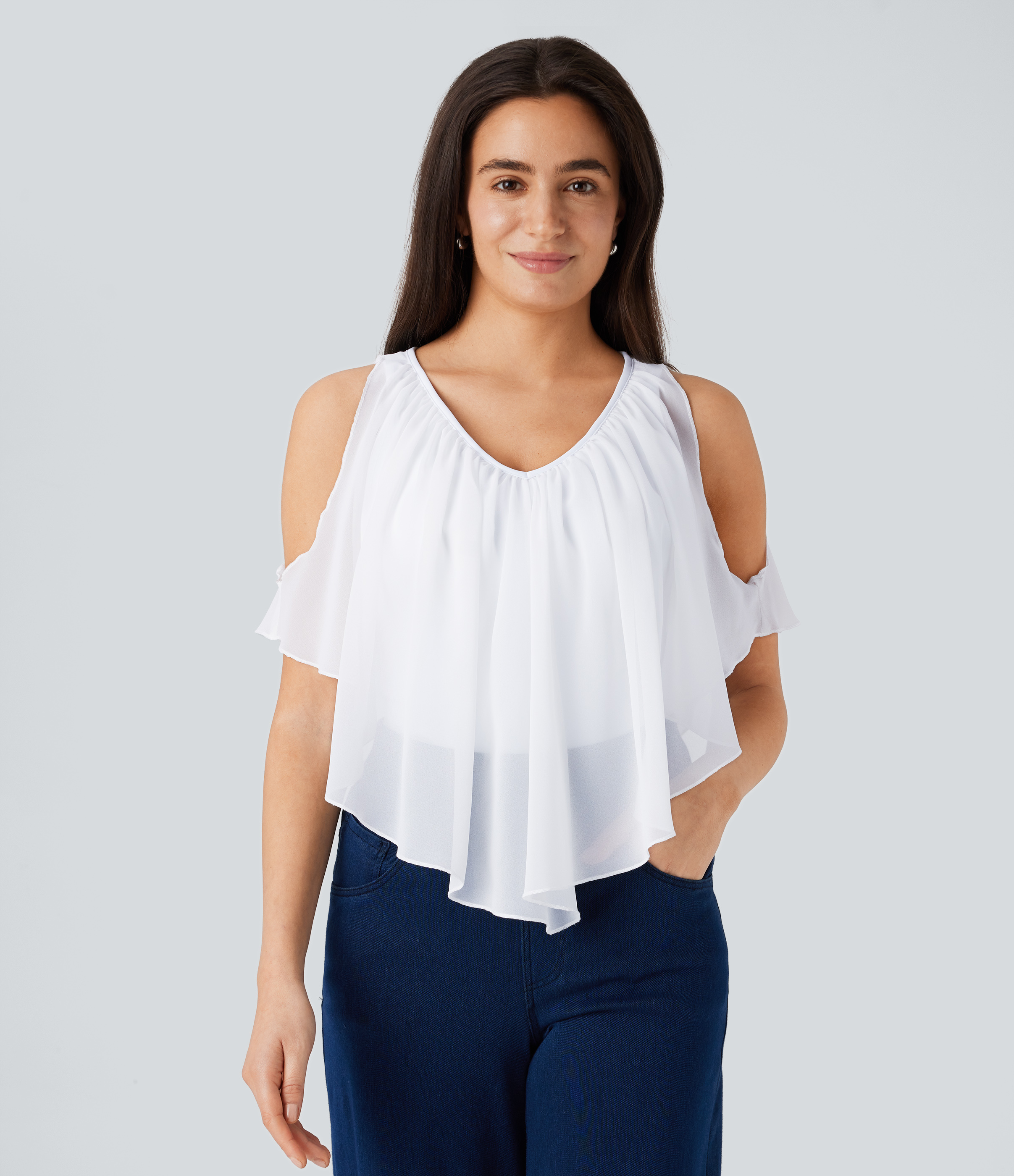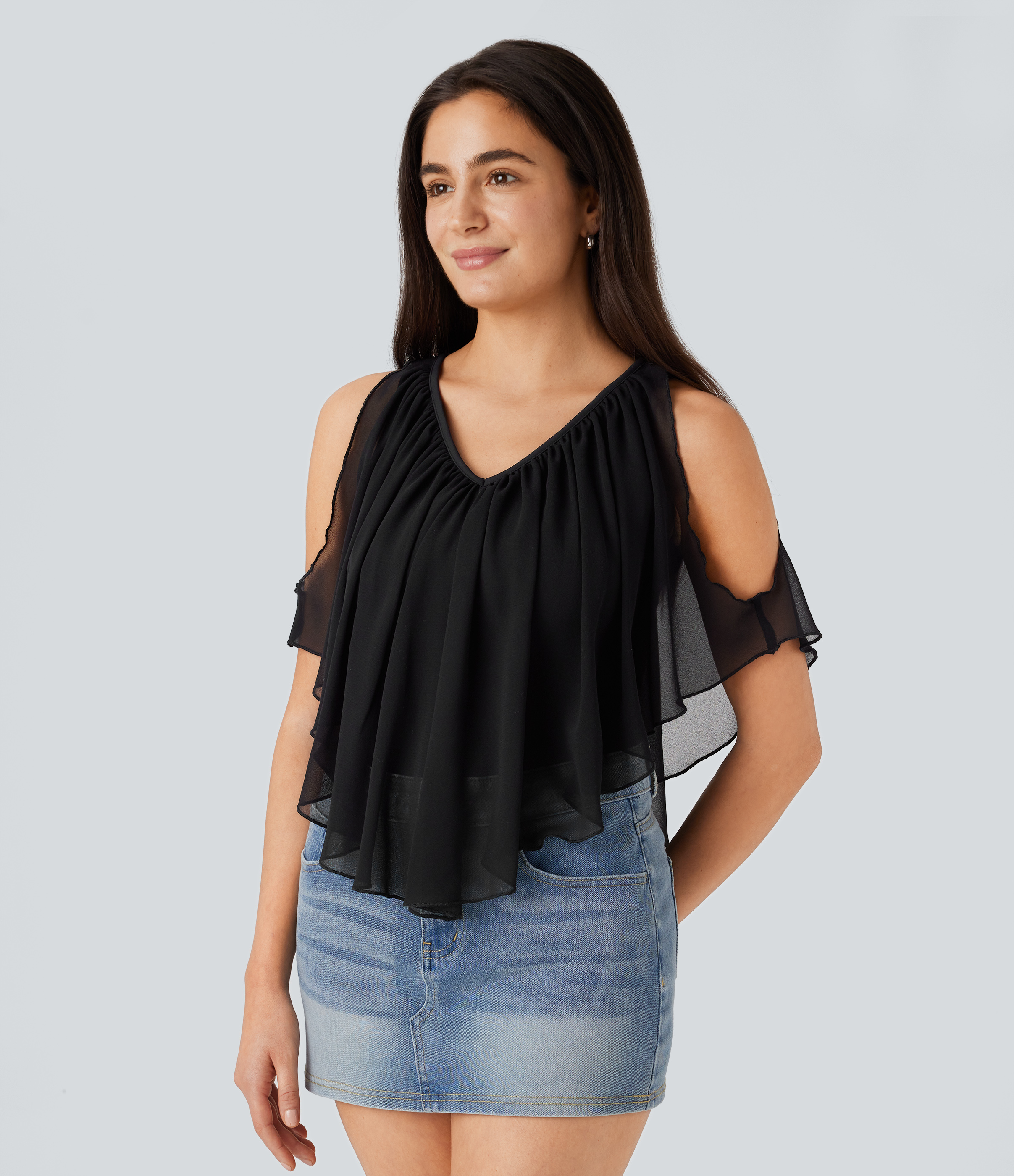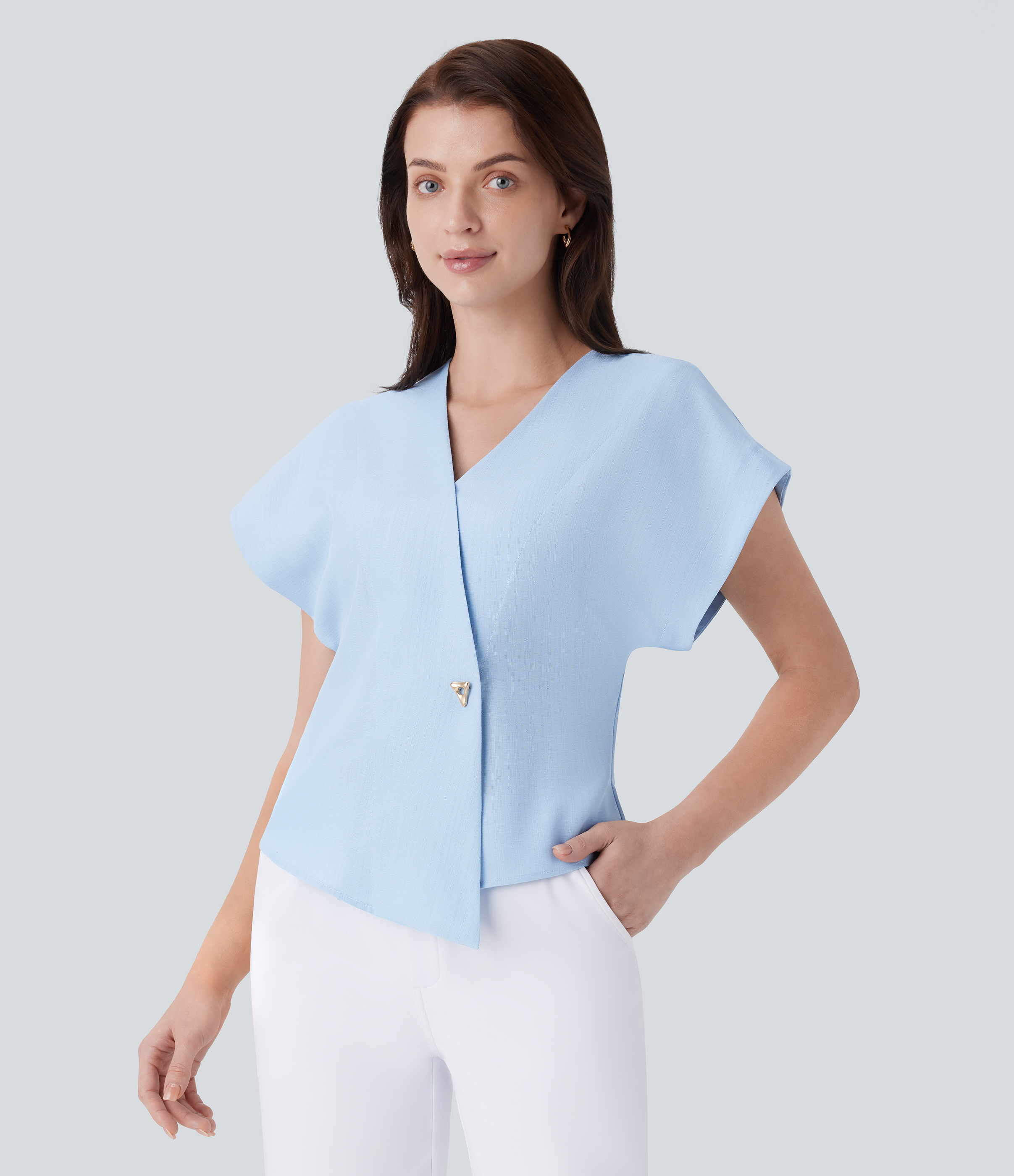 Halara V Neck Snap Button Long Sleeve Slim Work Top Tank Top - Darl Gray Floral Yarn - L golf tops halter top tunic tops sleeveless tops Halara