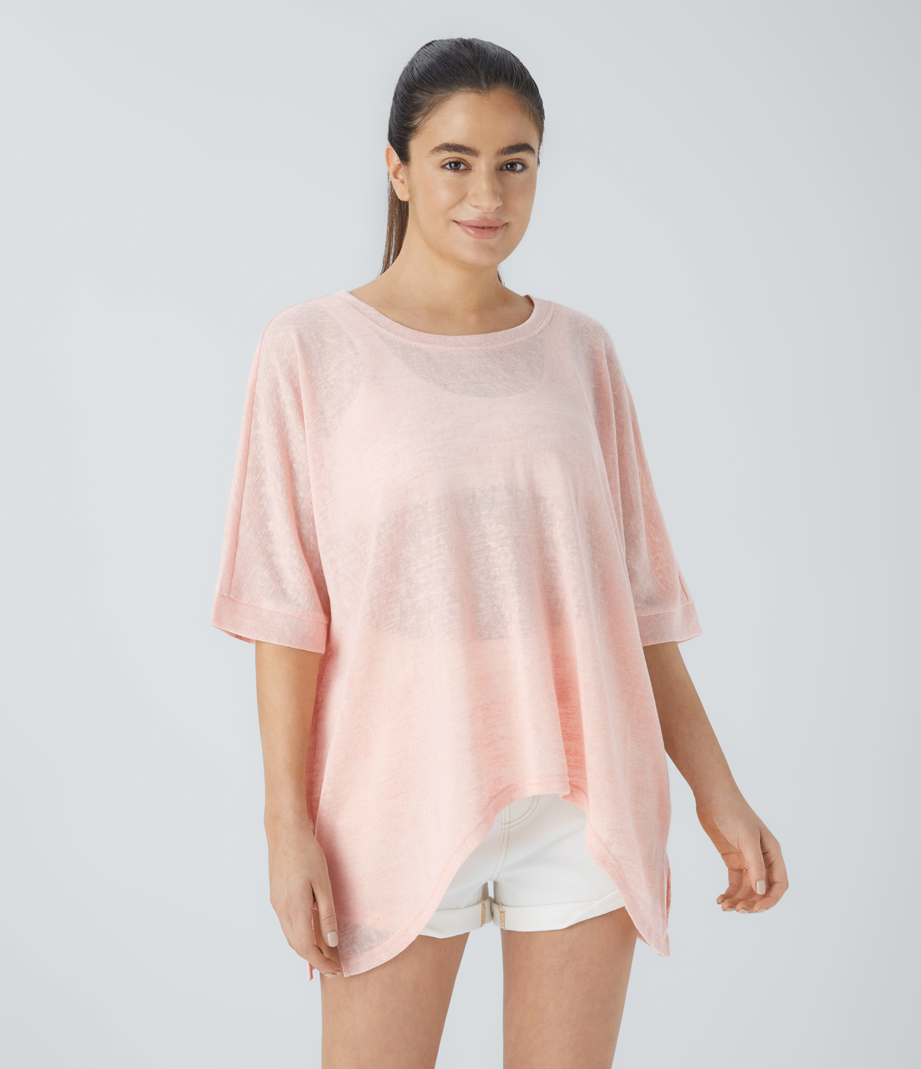Halara Ribbed Knit Lettuce Trim Drawstring Casual Tee - Grey - XL Halara