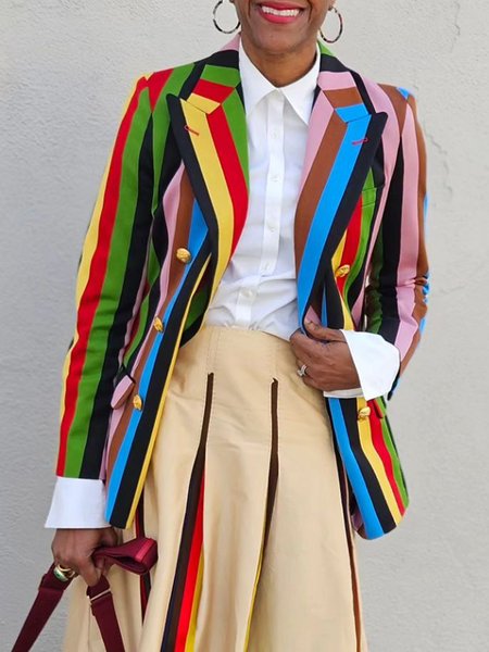 Urban Lapel Collar Long Sleeve Striped Blazer Blazers Stylewe