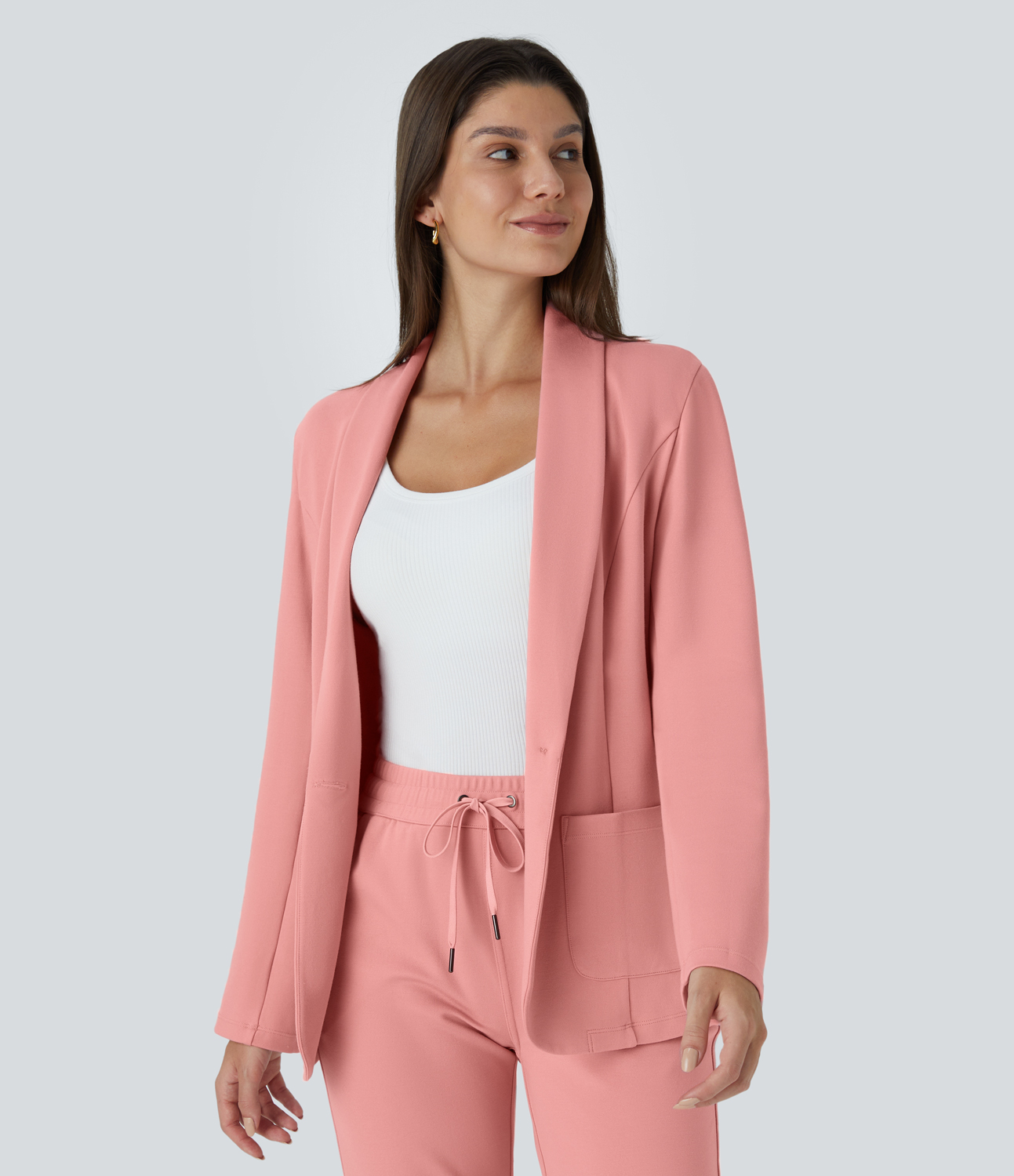 Halara Shawl Collar Single Button Front Pocket Work Blazer - Peach Blossom Pink - XL Halara