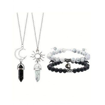 Valentine`s Day 4 Pieces Black White Turquoise Couple Heart Magnetic Bracelets and Necklace Sets Dresslily