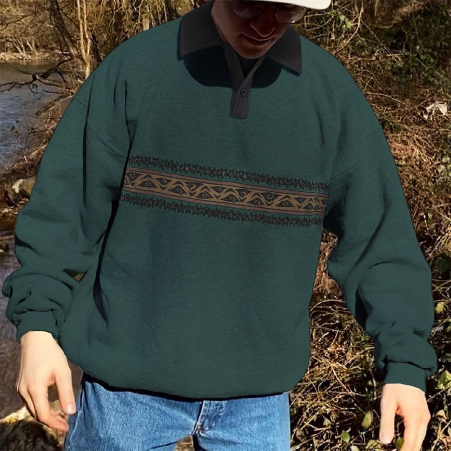 Men`s Retro Western Textured Print Zip Collar Sweatshirt Hoodies&Sweatshirts Lilicloth