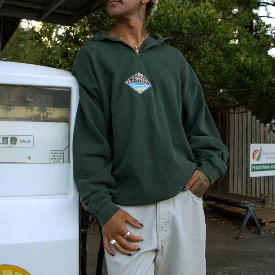 Lacoste Heritage Pánská mikina z bavlněného fleecu s výstřihem ke krku a potiskem Lacoste