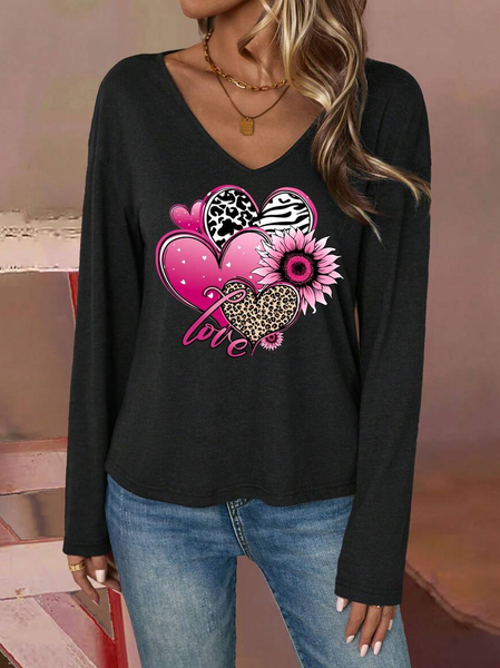 Women`s Long Sleeve Tee T-shirt Spring/Fall Floral Printing V Neck Casual Top T-Shirts JustFashionNow