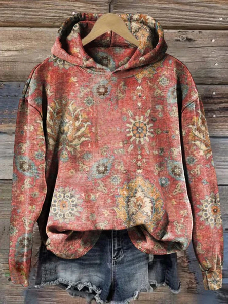 Women`s Retro Ethnic Pattern Print Casual Hoodie Hoodies&Sweatshirts Lilicloth